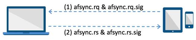 アプリをインストールしている間、認証手続きにおいて重要なステップは、接続済みのiPhoneまたはiPadがafsync.rqファイルおよびafsync.rq.sigファイルをコンピュータに送信すると、そのコンピュータ上のiTunesソフトウェアが正しいafsync.rsファイルおよびafsync.rs.sigファイルを応答としてiOSデバイスに返送しなければならない、ということです。応答として渡されたafsync.rsが正しいときにしかiOSデバイスはアプリをインストールしてDRM保護を復号化することができません。(実際のプロトコルはここでの記述よりも複雑です。議論を進めるために簡略化しました。)