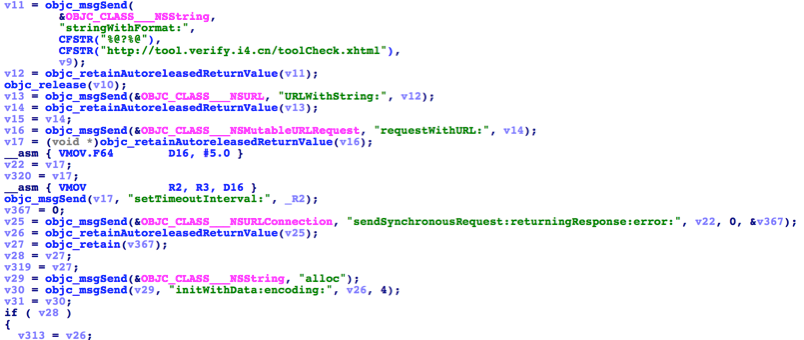 弊社が2月にこれらのアプリを解析したとき、このC2はデバイスのIPアドレスが中国本土のものである場合に「0」しか返しませんでした。これが、Appleのコード レビューをかわすのにアプリが取った方法の一部でなかったとしても、攻撃者はアプリがレビューを受けている状態にあると知っている場合、常に「1」を返すようサーバを設定することも可能でした。これにより、Appleのレビュー担当者がどこにいても、壁紙アプリのユーザー インターフェイスの中には、いつも何かの美しそうな絵だけがレビュー担当者の目に映ることになります。