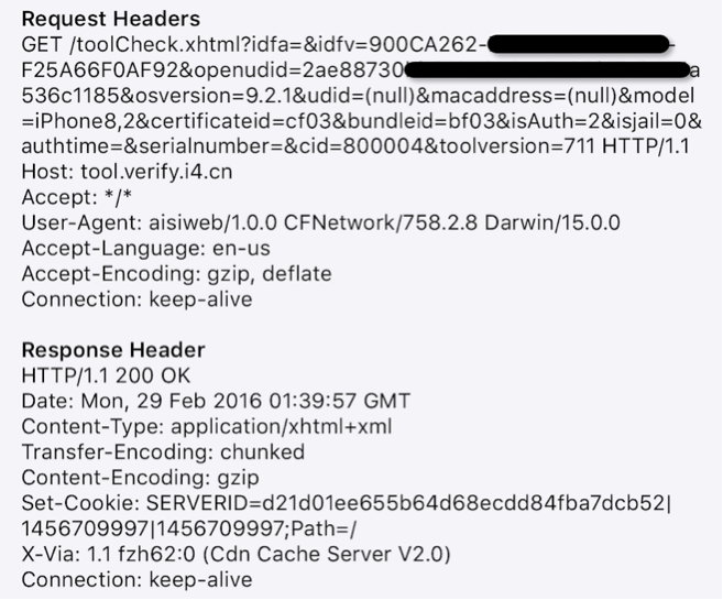 第2に、IPアドレスに基づいて別々のユーザー インターフェイスを使うのに加え、弊社のテストによれば、AceDeceiverは収集した情報によりデバイスを記憶します。これらのアプリはデバイスのユニークなIDをC2サーバにアップロードします。いずれデバイスが中国国外で使用されると、そのデバイスが後で中国本土のIPアドレスに戻ったとしても、悪意のある機能は相変わらず潜んだままです。