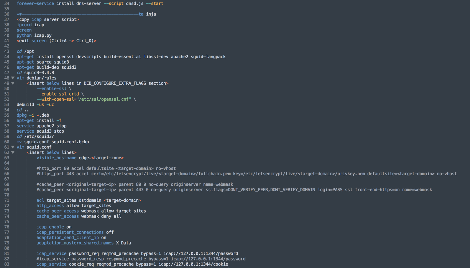 このデータ ダンプに含まれるwebmaskと呼ばれるツールは、特にDNSハイジャックの実行を目的とする一連のスクリプトと思われます。guide.txtというタイトルの説明ドキュメント(図16を参照)が付属しており、そこには提供されるツールを利用してDNSハイジャック攻撃を実行する手順がオペレーター向けに記載されています。手順ガイドと提供されている各ツールから判断する限り、このパッケージは、FireEyEがこれらの攻撃の実行方法についての調査結果で示している方法論、たとえばプロキシ パススルー(この場合、具体的にはSquid)を利用したICAPの使用、certbotを使用したLet's Encrypt SSL証明書の作成などの固有の詳細情報に一致しているように思われます。