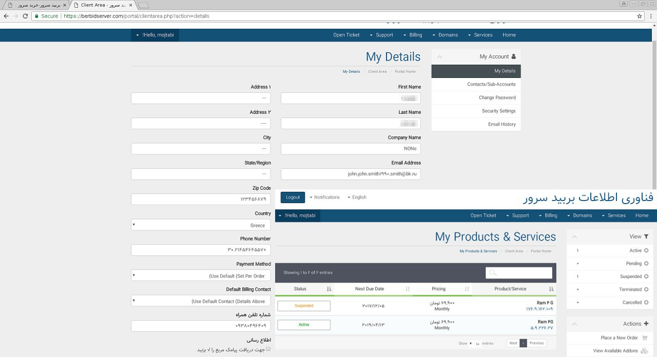 図19は、イランの仮想ホスティング プロバイダであるBerbid Serverに対する管理パネルを示しています。インフラストラクチャの他の詳細情報は表示されていません。