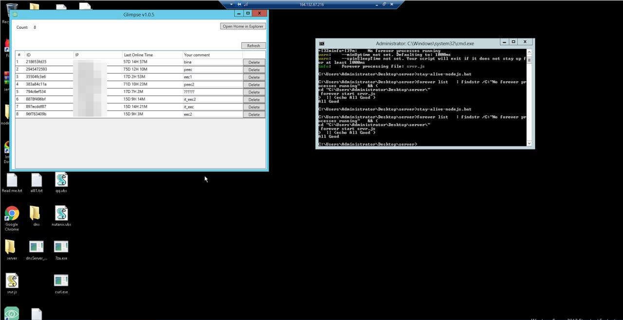 図21:リークされたデータに含まれるGlimpse C2が稼働するサーバーとのRDPセッションのスクリーンショット