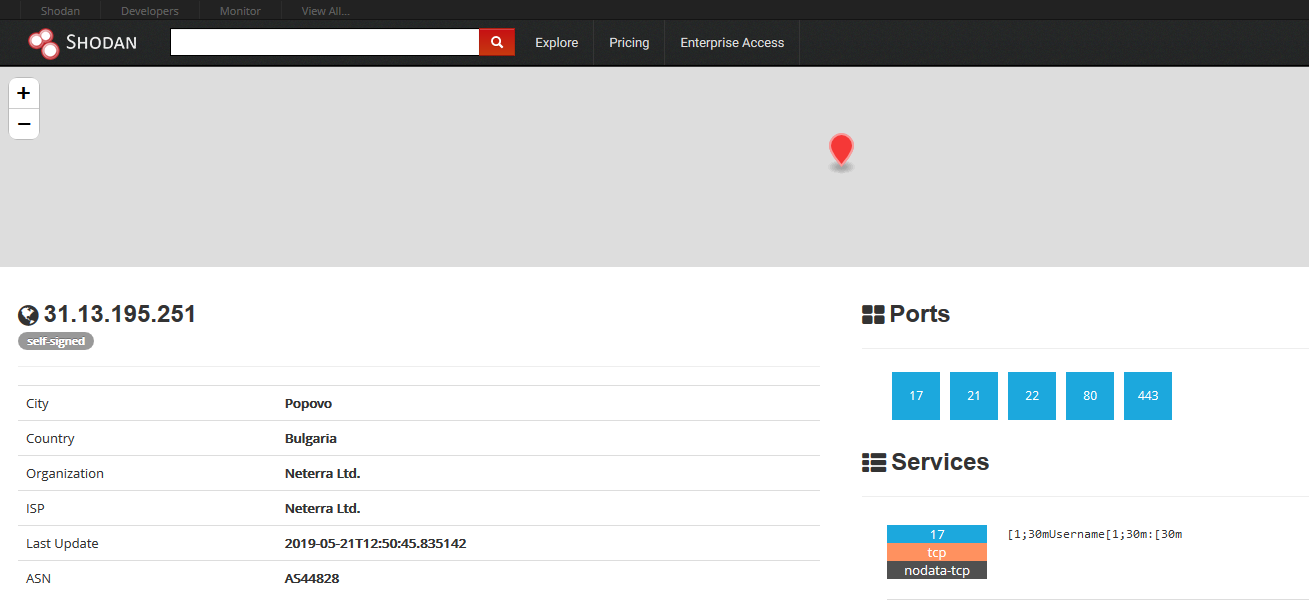 図2 ある時点でC2として31.13.195[.]251:17が使われていた様子を示すShodanの検索結果