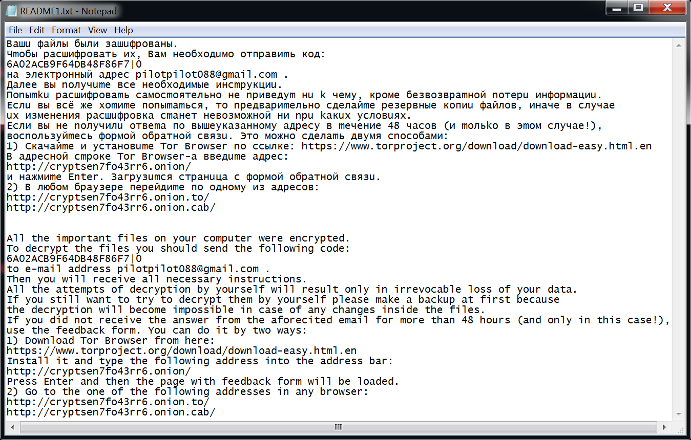 Shadeランサムウェア実行ファイル(EXE)は非常に一貫しています。分析したすべてのEXEファイルサンプルは、2016年から同じTorアドレス(cryptsen7f043rr6.onion)を復号化ページとして使っています。Shadeが2014年後半にTroldeshとして最初に報告されて以来、感染中に表示されるデスクトップの背景は同じです。