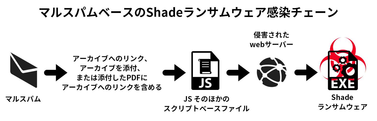 図4 マルスパムベースのShadeランサムウェア感染フローチャート