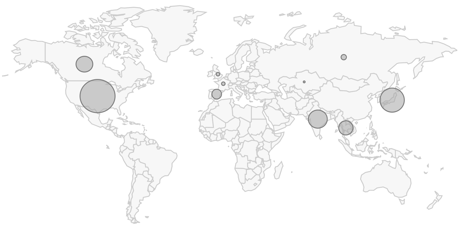 図6 AutoFocusによる検索結果トップ10カ国の世界地図表示