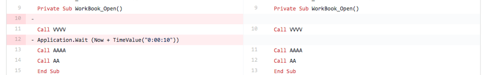 図8 VBScriptをマクロに追加して戻したことを示す繰り返し4に関するファイル間の差分のスクリーンショット
