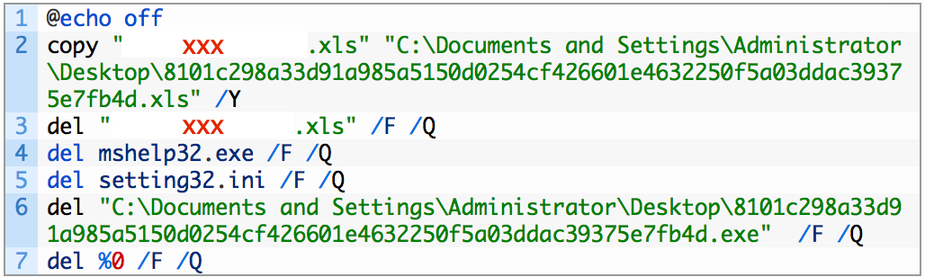 このバッチ スクリプトは新しいプロセスの中で実行され、Aveoおよびおとり文書が実行された後に実行する単純なクリーンアップ スクリプトとして動作します。
