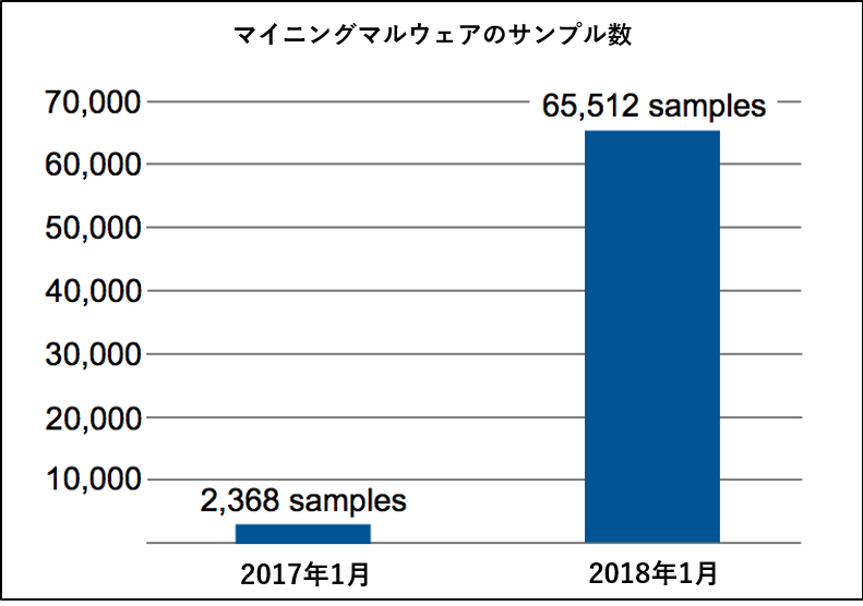 図2: 2017年1月と2018年1月のマイニングマルウェアのサンプル数の比較
